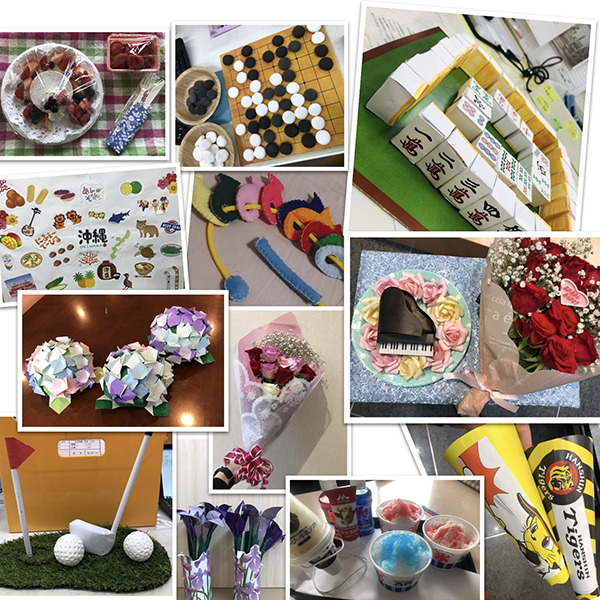 手先が器用ではないので不恰好なものもありますが、他のスタッフの人にも協力してもらいながら作ることが私自身の楽しみでもあります(^^)/